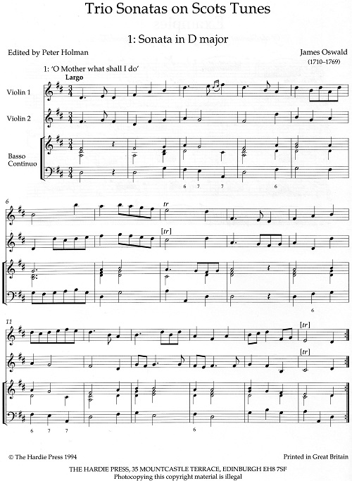 The three Geminiani Sonatas come from his "Treatise of Good Taste in the Art of Musick" (1749). The work by James Oswald is 'A Sonata of Scots Tunes'. Suitable repertoire for musicians from Grade 5 upward. Full score with separate instrumental parts.