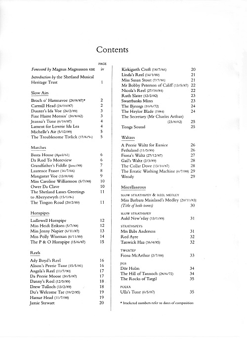 This volume of hitherto unpublished music of Shetland fiddler/composer Tom Anderson (1910-1991), contains 60 compositions including slow airs, marches, hornpipes, reels, waltzes, strathspeys and jigs. Bowings are provided for all the tunes and all the melodies come with chord symbols appropriate for piano, accordion, or fretted stringed instruments. Foreword by Magnus Magnusson.