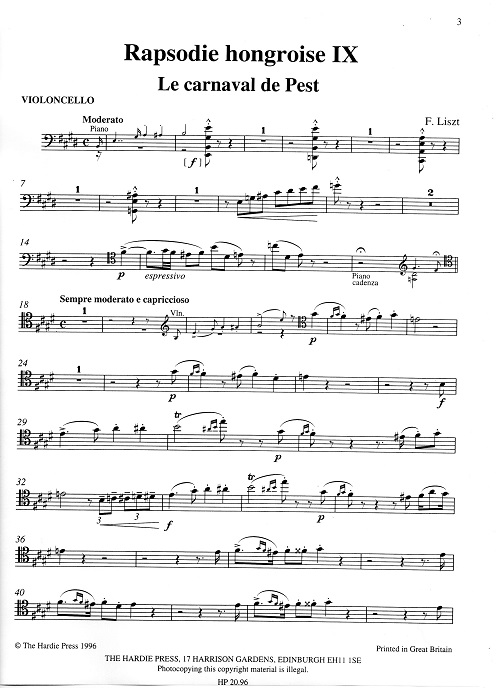 This edition, the first to include all of Liszt’s works for piano trio in one volume, comprises: Rapsodie hongroise IX – Le carnaval de Pest, S379 (c. 1850); Tristia – La vallée d’ Obermann, S723 (c. 1880) in three versions (first complete publication); Orphée – Poème symphonique (no. 4), S98 (1853-4) – transcribed in 1885 with Liszt's imprimatur by Camille Saint-Saëns.