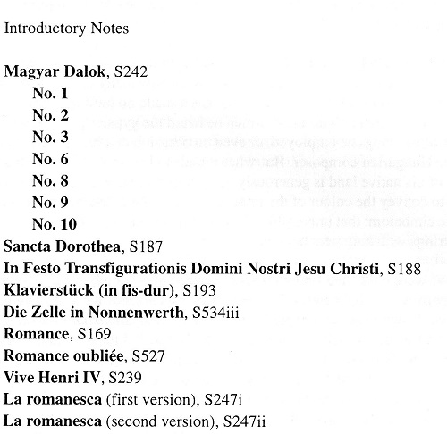 This collection of sixteen of Liszt's piano pieces, mostly of moderate difficulty, was first published in 1978 (entitled 'Unfamiliar Piano Works'). Now, with a new edition, we have taken the opportunity to revise the whole collection with reference to the best manuscript and published sources, providing an accurate text of these rare and delightful pieces. With Introductory Notes. CONTENTS: Magyar Dalok Nos. 1, 2, 3, 6, 8, 9, 10; Sancta Dorothea; In Festo Transfigurationis Domini Nostri Jesu Christi; Klavierstück (in fis-dur); Die Zelle in Nonnenwerth (final version); Romance; Romance oubliée; Vive Henri IV (first publication); La romanesca (first and second versions).