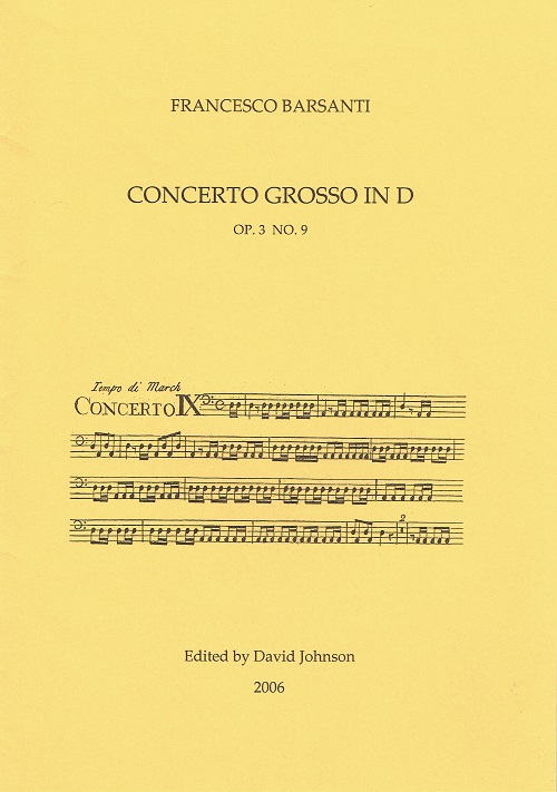 Francesco Barsanti was born in Lucca, Italy. He moved to London in 1714 and then to Edinburgh in 1735 before returning to London in 1743. In retrospect, his time in Edinburgh seems to have been his most productive and creative period. The op.3 concertos, individual and finely crafted works, were published in Edinburgh in 1742 and are dedicated to James, Earl of Wemyss.