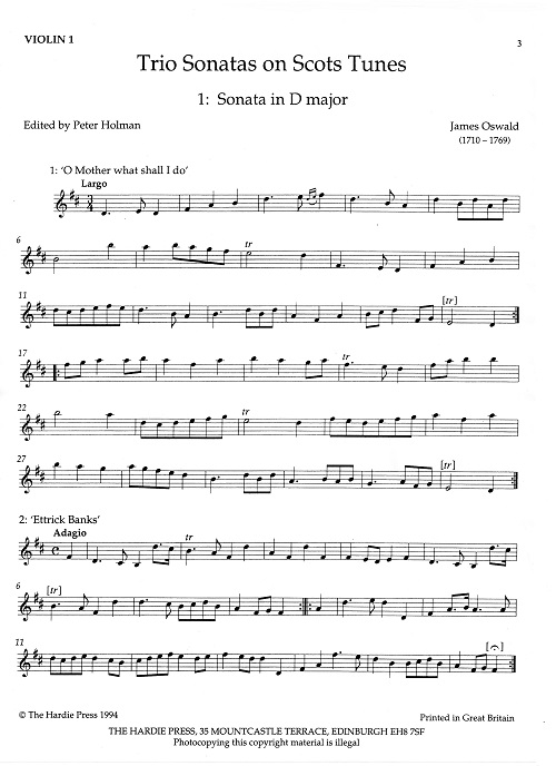 The three Geminiani Sonatas come from his "Treatise of Good Taste in the Art of Musick" (1749). The work by James Oswald is 'A Sonata of Scots Tunes'. Suitable repertoire for musicians from Grade 5 upward. Full score with separate instrumental parts.