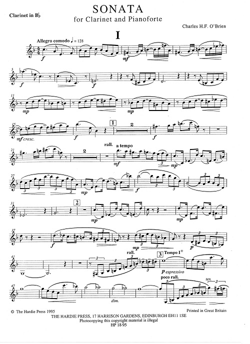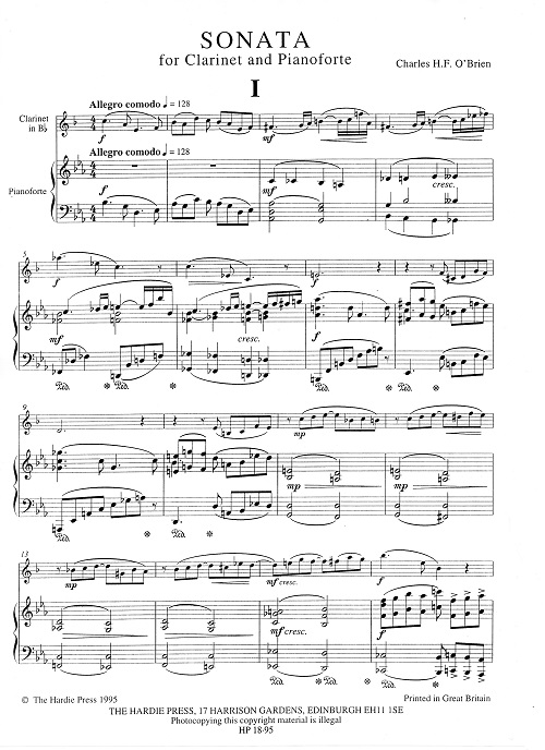 Born in 1882, O'Brien studied with Hamish MacCunn and produced a considerable amount of orchestral, chamber and piano music. This sonata was composed in 1939-40 and is in 3 movements: allegro comodo; andante semplice, allegro con brio, and is now published for the first time. This major recital work is beautifully crafted for both instruments, drawing on a richly poetic vein of melodic and harmonic inspiration.