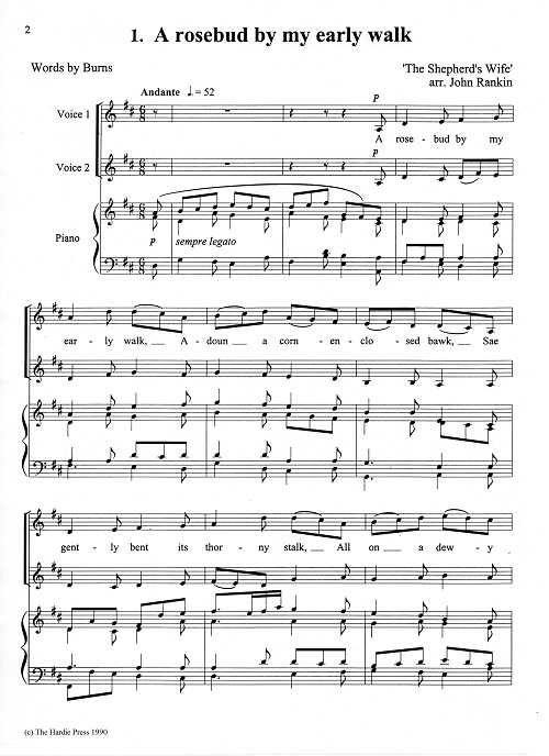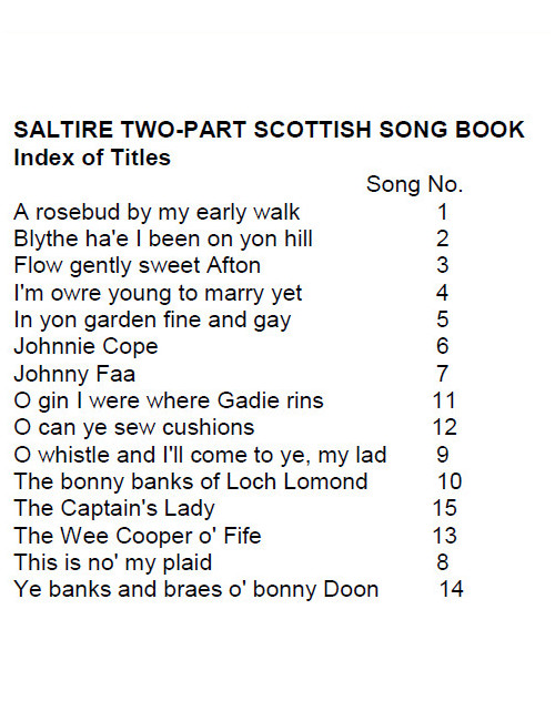 Chosen and arranged by three significant musicians who have a distinguished record in the contemporary presentation of the national heritage of Scottish song, these 15 traditional songs for two voices with piano accompaniment, are suitable for adults and children, male and female voices, duets or groups. Included are the well-known titles by Robert Burns, 'A rosebud by my early walk', 'Flow gently, sweet Afton', 'I'm owre young to marry yet', 'O whistle and I'll come to ye, my lad' and 'Ye banks and braes'. (Melody edition also available - HP13)