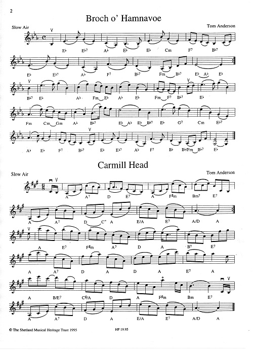 This volume of hitherto unpublished music of Shetland fiddler/composer Tom Anderson (1910-1991), contains 60 compositions including slow airs, marches, hornpipes, reels, waltzes, strathspeys and jigs. Bowings are provided for all the tunes and all the melodies come with chord symbols appropriate for piano, accordion, or fretted stringed instruments. Foreword by Magnus Magnusson.