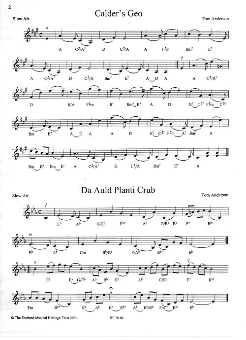 This, the second volume, contains a total of 70 compositions comprising 9 slow airs, 11 marches, 5 hornpipes, 23 reels, 9 waltzes, 4 strathspeys and 5 jigs, together with some miscellaneous pieces. As in Vol 1, bowings and chord symbols are provided for all the tunes. The bowings are based for the most part on Tom Anderson's own manuscript instructions. Foreword by Aly Bain.
