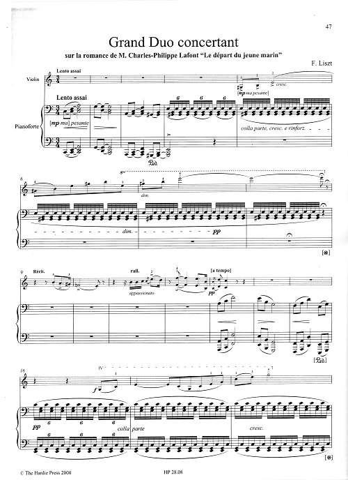 A 200-page volume of original music by Liszt for violin and piano? It is scarcely credible that such a significant body of work by such a major composer should have remained in total obscurity for so long. In fact, these extraordinary pieces have never before been issued together, and the present publication marks the largest collaborative project ever undertaken by The Liszt Society and The Hardie Press. These works traverse Liszt's whole composing life, encompassing great virtuoso concert pieces and wonderfully intimate miniatures. They show a serious effort to come to grips with what a solo violin might be able to accomplish, and at the same time demonstrate a deep and affecting skill in the art of duo writing.