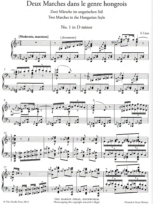 This edition contains the only complete version of Liszt’s Two Marches in the Hungarian Style - noble pieces of great spirit. The other works in the volume come from the visionary old Liszt: elegiac pieces, folk-song arrangements, a Bartókian Csárdás and a truly bizarre nocturne describing the torment of insomnia and its resolution. The volume was first published in the 1950s, but now is reissued with a number of exciting additions from original Liszt manuscripts. The whole volume has been scrupulously revised with reference to be best manuscript and published sources to produce an accurate Urtext.